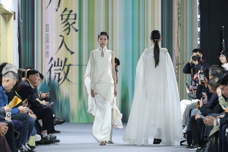 “丝路华彩·锦绣前行”丝绸创新设计专场发布秀呈现三大精彩篇章:“万象入微”-浙理工·頔南丝韵(国际青创)2026S/S丝绸时尚发布、“頔南丝韵”优秀商户服装联合发布、“2024/2025首届中国丝绸创意设计大赛”成果发布。