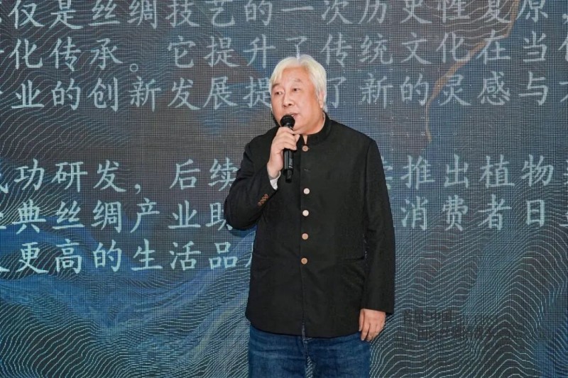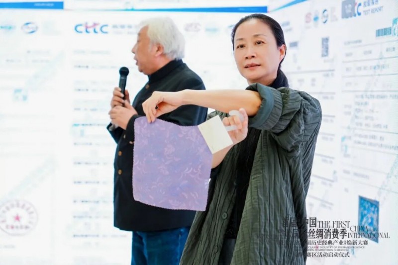下午,2026春夏丝绸时装专场商贸对接会以湖北省非遗“传统植物染料染色技艺”代表性传承人黄荣华大师与浙理工湖州研究院成功复原仅存于《红楼梦》笔下的历史丝绸名品“软烟罗”,并正式发布为开启。