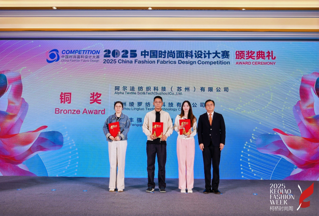 在柯桥时尚周(秋季)期间举行的“柯桥时尚设计展”中,特别展示了本届大赛的获奖产品。一方面集中展现了纺织企业在材料应用、时尚设计、绿色技术等方面的卓越创新能力,让采购商和参展商直观感受到中国面料设计的顶尖水准;另一方面,依托柯桥时尚周打造的国际化、专业化展示平台,为获奖面料企业拓宽了与国内外采购商交流对接的渠道,打破了地域与信息壁垒,有效促进了产业链上下游创新要素的协同联动,为设计创意向市场价值的转化搭建了重要桥梁。
