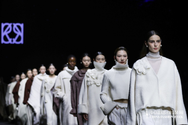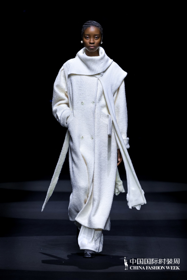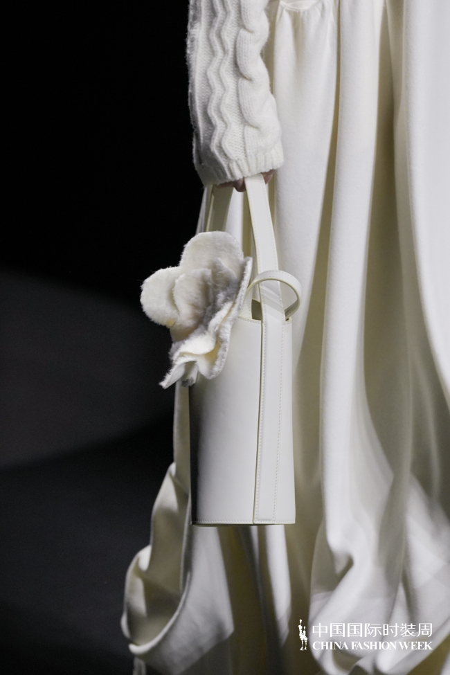 首次登陆中国国际时装周,设计师陈巧萍保持一贯含蓄内敛的风格,见花似藏,不扭捏但极为细腻,如肌肤般柔软的疗愈质感,被置于雪域辽阔且澄澈的背景下,这是她对当代精神的深度转译。手工立体花朵以形态呈现,平面花型、立体造型与层叠缝制的手法,皆是设计师温度的延展,粗纺羊毛、柔软丝绒与肌理感针织的材质碰撞,隐喻着坚韧与温暖并存的生命状态。