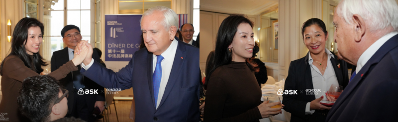 巴黎大秀期间,ask junior林总与中国人民的老朋友、法国前总理拉法兰先生亲切握手交谈,作为被中国授予“友谊勋章”的获得者,拉法兰先生对ask品牌的认可,彰显了ask在世界童装领域日益提升的影响力,ask用一个问号,叩响世界童装新时尚的序章。