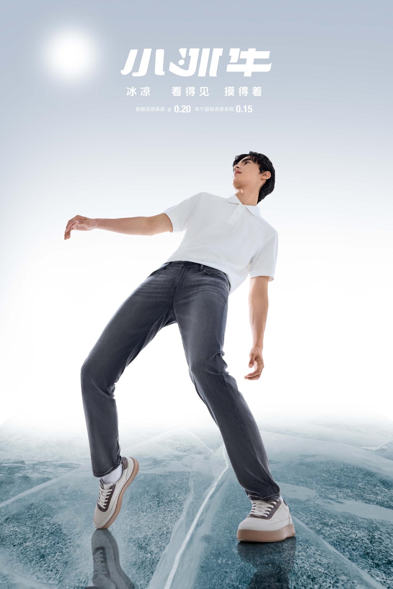 “小冰牛”牛仔系列延续了这一产品逻辑。针对夏季牛仔裤闷热、黏腻等普遍问题,该系列以凉感系数≥0.20的面料为基础,在保持牛仔裤挺括外观的同时改善夏季穿着体感。版型上,429合体版追求“不紧绷、不松垮、不黏腻”的穿着效果;设计上,保持利郎一贯的简约风格。各项配置共同指向一个目标:让产品本身解决多场景穿着需求,减少消费者在体面与舒适之间的取舍。整个系列传递出“夏场万千状态由己”“自在如风,任意东西”“COOL爽一夏”的夏季着装理念。