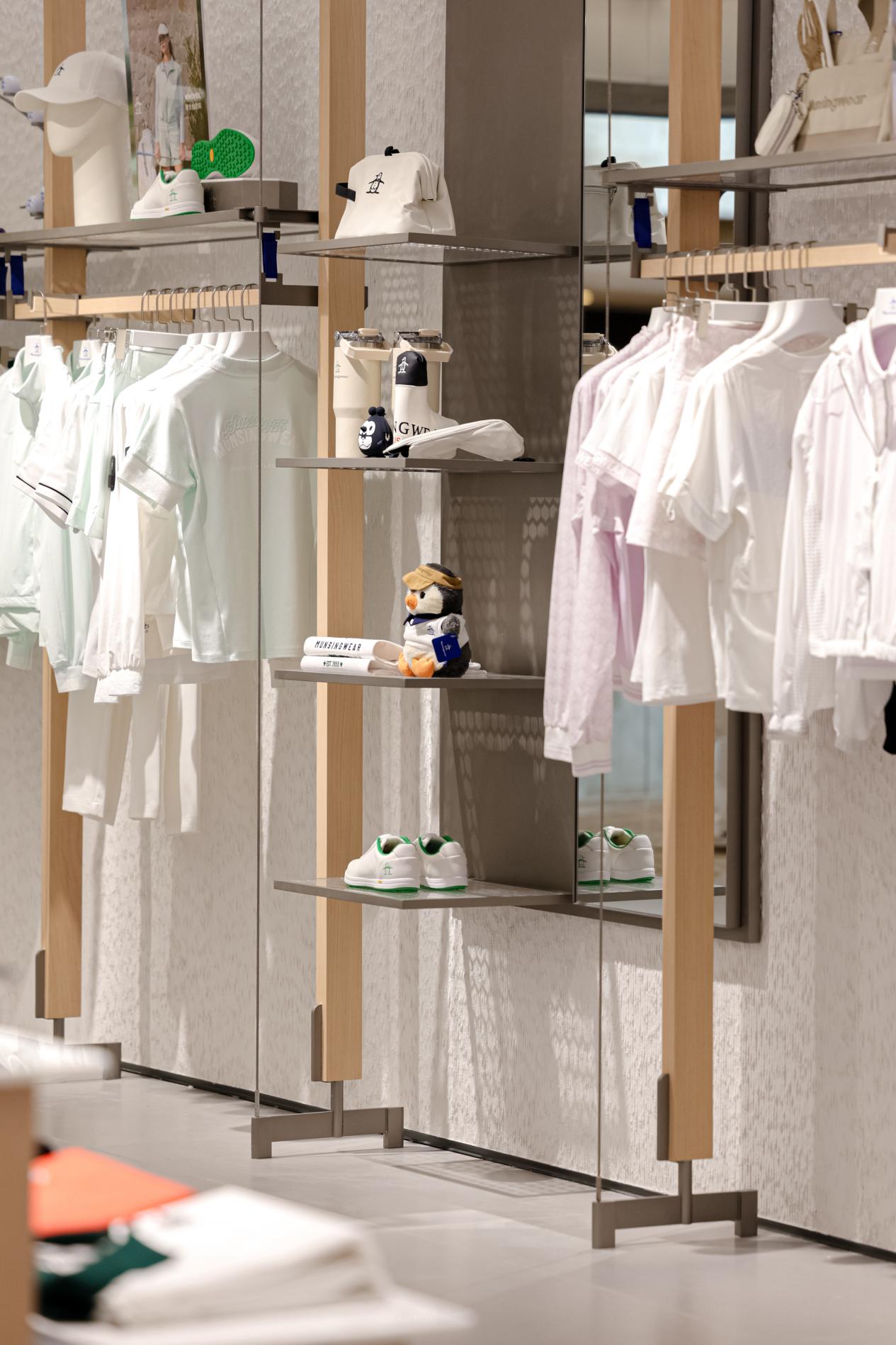 在国内竞争激烈的运动时尚圈,万星威要想抓住这批不断涌现的新客群,必须贴上足够鲜明且差异化的标签。在品牌战略规划中,保持万星威高舒适度且具备功能性的产品DNA所提倡的“舒适高尔夫”概念的同时,还有几大核心词:“纯血高尔夫、全天候/多地形、优雅设计、舒适/高级感、企鹅IP”。这些标签在线下门店设计风格和品牌带来的最新形象大片中体现得尤为清晰。