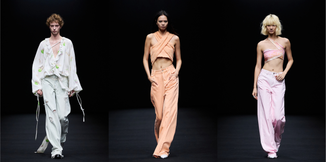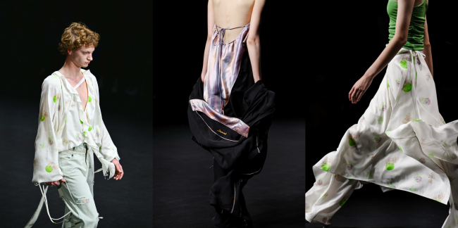曙光·柔软温柔:长时间的战斗,穿越迷雾,逐渐看见了希望的曙光,系列中包含柔软的天丝醋酸、缎面材质衬衫与裙装,同时又包含了街头感的多口袋工装设计,从硬挺廓形到柔软缎面,描述此阶段的奥德赛内心充满柔软的信念与抵达后的喜悦、自由。
