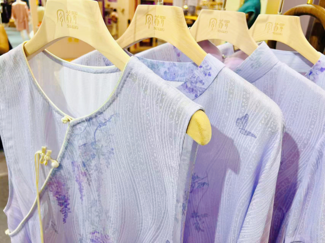 “目前,东方喜罗®系列的服装、包袋、挂饰、小屏风摆件等产品已经在我们门店和线上进行销售并获得客户的广泛喜爱。接下来,我们也会继续开发更多适合婚庆场景或新婚家庭生活点缀的符合当代审美的创新产品,来打开新的市场赛道。”苏州市锦达丝绸有限公司副总经理杭航在采访中告诉我们。