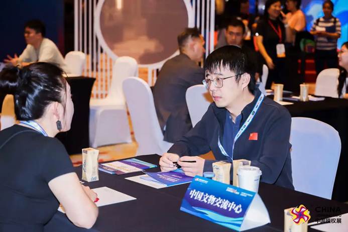 嘉宾分享环节结束后,本届文博对接会的精准对接环节随即启动,现场迅速切换至高效洽谈模式,博物馆与企业双方交流热情高涨。各文博机构携带特色馆藏 IP、数字文物资源等核心合作资源,与来自各行各业的潜在被授权方围坐洽谈。双方围绕资源匹配度、合作模式创新、商业价值转化等核心议题深入沟通,既探讨传统实物文创的联合开发,也聚焦数字文创、沉浸式体验、跨境授权等新兴方向,展开多轮细致磋商,就合作意向达成了初步共识。