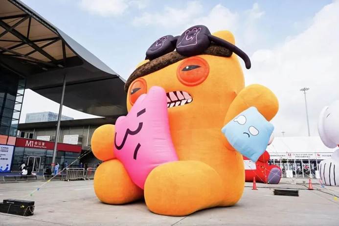 这个不断移动的快乐磁场,使得人流持续汇聚,许多观众更是专程为其停留,只为亲身感受这份纯粹的快乐。而展区入口处8米高的萌牙怪兽FUGGLER气模则以其“捣蛋”的萌趣造型,与人偶形成动静结合的展示效果,进一步强化了IP形象的视觉冲击力与记忆点。