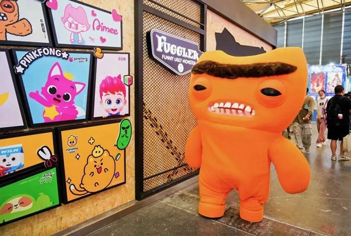 杉百品牌此次展出的IP阵容堪称豪华。「潮流酷玩」矩阵中,萌牙怪兽FUGGLER凭借泡泡岛音乐节全年24亿曝光的强势表现、与气宝AngryAimee、Bread Barbershop天才面包理发师、黏黏猫Ninimo等IP共同吸引着Z世代观众的目光。