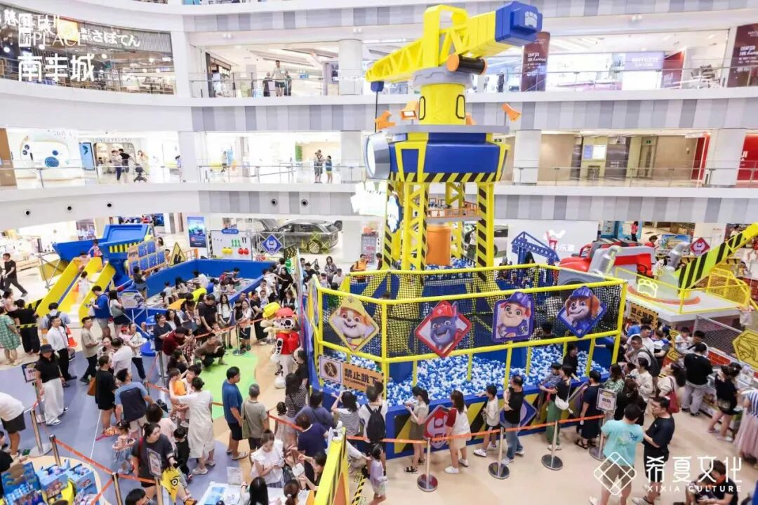 2025年7月26日至10月10日,《汪汪队立大功》的首部衍生剧《汪汪队之小砾与工程家族》联合上海虹桥南丰城,共同打造全国首个沉浸式主题展——“汪汪队之小砾与工程家族—建造大行动”。此举不仅填补了国内儿童工程启蒙实体展览的市场空白,更借助《汪汪队立大功》IP的强大影响力,精准激活了暑期亲子消费群体。展览以1:1比例还原动画场景,设有五大主题互动工区,利用脚手架、塔吊、砖瓦等极具工程建筑风格的互动装置及设备,辅以工程家族狗狗角色和功能化工程车辆,营造出真实而繁忙的工地氛围,打造出现实版的“汪汪工程乐园”。活动自推出以来人气火爆,深受亲子家庭的喜爱。