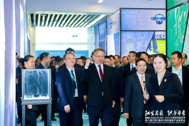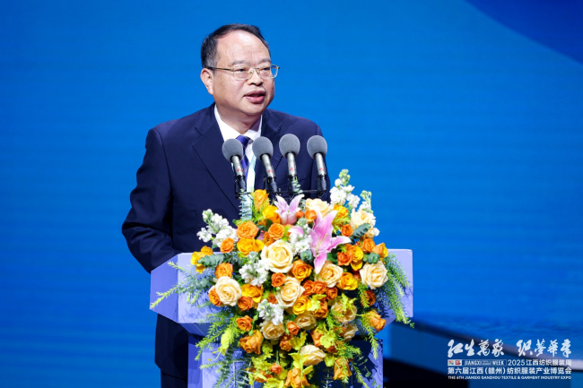 11月24日,2025江西纺织服装周暨第六届江西(赣州)纺织服装产业博览会在于都盛大开幕。省委常委、市委书记黄喜忠出席并宣布开幕。中国纺织工业联合会会长孙瑞哲,工信部消费品工业司二级巡视员邓小丁,省工信厅副厅长江绍龙,英国德本汉姆集团CEO丹尼尔·詹姆斯·芬利,北京红都集团总经理金美湄,县委副书记、县长李松柏出席并致辞。中国纺织工业联合会副会长、中国服装协会会长陈大鹏,省商务厅副厅长黄小燕,省贸促会副会长朱晓燕,省发展改革委副主任刘兵,省科技厅副厅长唐云志,省财政厅副厅长苏昌平,赣州市人大常委会主任赵多仙,市政协主席徐兵等出席活动。市政府副市长雷鸣主持开幕式。部分省直单位、高校和省内其他设区市有关领导,来自广东深圳、中山,广西玉林、海南昌江等有关单位负责同志,赣州市各县(市、区)、市直(驻市)有关单位负责同志,国家部委对口支援(定点帮扶)挂职干部等,以及来自全国各地的纺织服装行业专家学者、龙头企业嘉宾、协会会长以及参展商、采购商等参加活动。