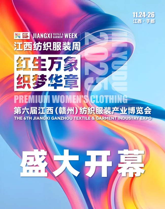 据了解,2025江西纺织服装周暨第六届江西(赣州)纺织服装产业博览会以“红生万象 织梦华章”为主题,举办时间为11月24日至26日。期间,还将举办国际直采对接会、电商推介会、供应链资源对接会、原创设计秀等活动,同步开展于都农特产品暨美食展销活动、发放600万元电子消费券等。
