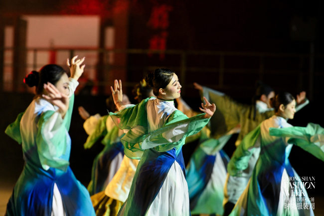 当晚,中国(大涌)红木文化博览城作为大秀主场,其古色古香的建筑群落与“古韵新潮”的活动主题形成奇妙呼应,营造起沉浸式演绎舞台,随着服装秀正式拉开帷幕,金鼎智造、霞湖世家、通伟服饰、元一智造、莉星服饰、华人礼服、玮烨服装、华沙利科技、卓尔特时装等沙溪休闲服装代表企业,品韩惠服饰、时默希、蓝森林服装、维晋服饰、俊羽服饰、清禾服饰等大涌牛仔服装代表企业以及广东职业技术学院、香港知专设计学院逐一震撼亮相。