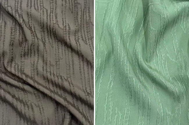 深耕高端丝绸领域的嘉欣丝绸,则在纤维融合中探索时尚边界,优可丝®纤维便是其创新配方中的“关键搭档”。凭借细腻柔滑的纤度优势,优可丝®与丝绸或涤纶交织后,可显著增强手感的柔软度与亲肤性,使轻薄类时装面料既轻盈又更具垂坠性。此次嘉欣丝绸获奖的面料,经纬向均采用优可丝®纤维,将“柔软舒适”的特质拉满。不仅如此,优可丝®纤维稳定的强力与回弹性,还为结构性织物带来升级可能。嘉欣丝绸将其与提花肌理巧妙结合,让布面纹理更具层次与立体感,同时保障了良好的垂感与尺寸稳定性。