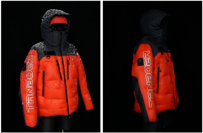在面料选择上,品牌坚持“与自然为友”的品牌哲学。超轻量极地再生羽绒服创新性地采用回收自海洋幽灵渔具制成的7D/6F超细旦纱线所制再生锦纶(聚酰胺纤维)面料,克重仅为25克/平方米,配合C0 DWR防泼水处理工艺,在保持轻盈质感的同时实现出色的防水、透湿、防风低温及耐磨等多方面性能。3级防水性能、7牛高抗撕裂强度和超过10,000次循环的耐磨表现,确保在极端环境下的持久防护。嵌入式 DNA 追踪系统确保了所使用回收材料的可追溯性。核心填充则选用900高蓬松度的95%优质鹅绒,搭配北极光矩阵腔结构可在低至 - 40°C 的温度下实现卓越保暖功能。以运动为导向的 4D 版型、多功能口袋布局和集成的Recco雪崩生存收发器,为户外探索提供专业生存保障,使其适用于科学考察和高要求的极地穿行。