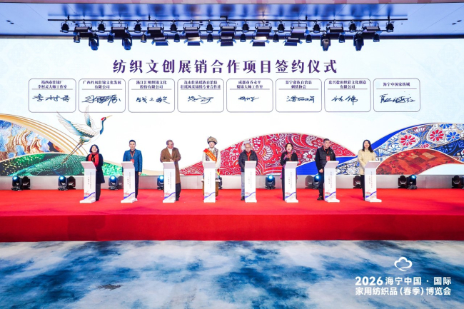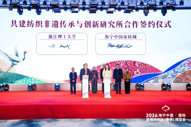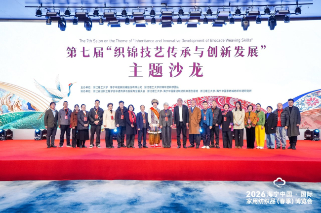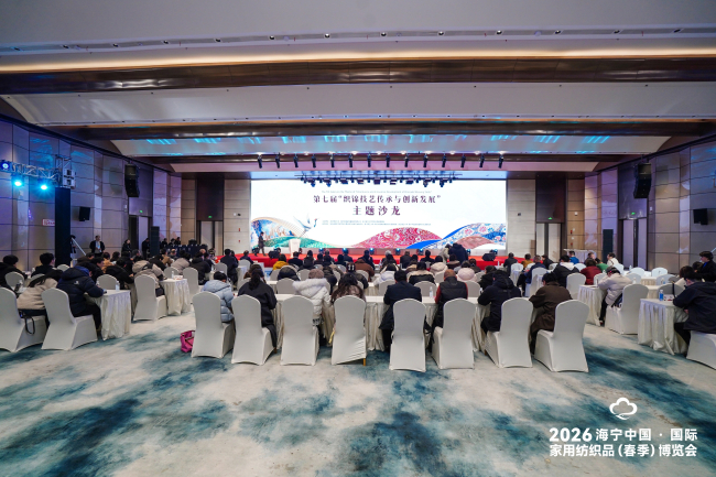 3月4日,作为海宁中国·国家用纺织品(春季)博览会主题活动之一的第七届“织锦技艺传承与创新发展”主题沙龙举办。织锦是中华文明千年传承的艺术瑰宝,承载着民族文化基因与工匠智慧。本次活动汇聚国内非遗传承人、行业专家、企业代表及技术研发机构,共同聚焦中国纺织非遗的传承,探讨织锦技艺在坚守传统的同时换发新的时尚活力。会上还举行了浙江理工大学-海宁中国家纺城共建纺织非遗传承与创新研究所合作签约,以及纺织文创展销合作项目签约仪式。
