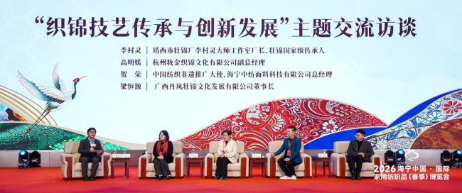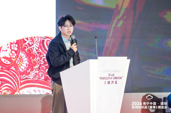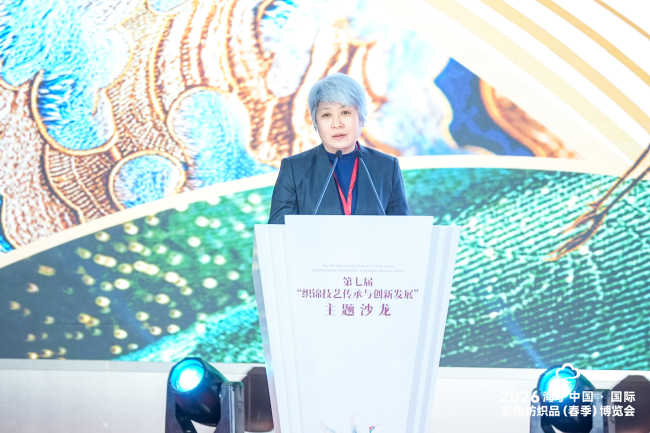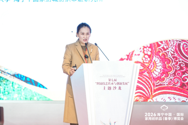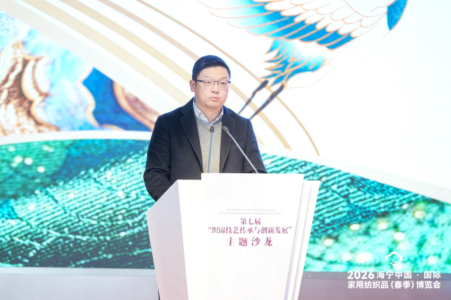 中国纺织工业联合会产业集群工作委员会副主任兼秘书长、中国纺织工业企业管理协会副会长张海燕指出,让纺织非遗经典走出博物馆,让经典织锦纹样融入现代纺织时尚,让织锦文创走进现代生活,已成为业界对纺织非遗传承与创新发展的路径共识。近年来,传统织锦逐步走进现代家居场景,通过提花工艺创新、非遗元素活化应用,既满足了人民群众对品质生活的美好向往,也不断拓展家纺产业的发展空间。对于非遗技艺的传承与发展,有许多优秀的经验值得传播和推广,如:海宁家纺城立足产业基础,着力打造时尚面料创新中心、纺织非遗文创馆等平台,积极发展文创衍生品,创新消费场景,既为非遗传承注入市场活力,也为国风面料开辟时尚新赛道;浙江理工大学依托纺织专业院校独特优势,持续赋能纺织传承发展,赋能人才队伍建设。面对新时代消费升级与科技革命的双重机遇,张海燕表示行业协会将一如既往发挥自身优势和作用,积极联动政府、院校、企业等各方力量,在政策引导、标准制定、资源整合等方面持续发力,为纺织非遗传承与创新,为纺织时尚产业发展持续赋能。