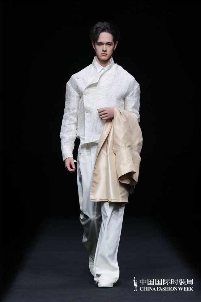 服装款式亦藏巧思,或飘逸灵动,似山间云雾缭绕;或精致细腻,如林间繁花绽放。中式经典美学元素与西装、马甲、短外套等西式廓形大胆碰撞解构,打破时空边界;不同质感的面料巧妙搭配,消解了传统服饰的厚重感,让东方雅致以更具当代感的姿态融入日常,完成传统文化的时尚化迭代与精神延续。