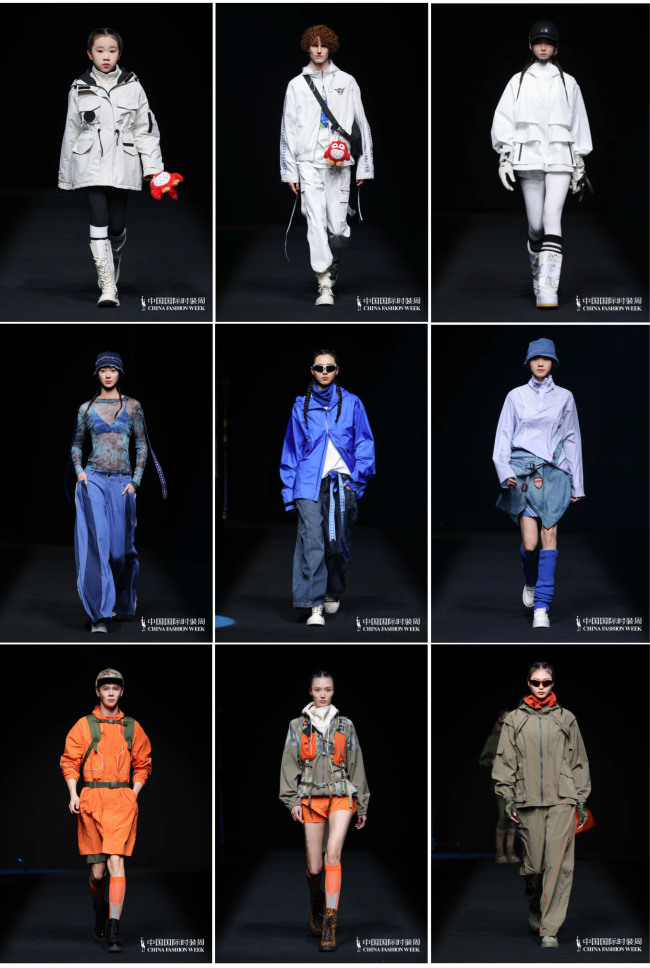本次服装设计使用的面料应用了再生涤纶、莱赛尔、生物基等环保纤维,将经典牛仔蓝、迷彩色、橙色、白色等丰富颜色碰撞融合,让经典牛仔装具备高色牢度与挺括的时尚版型,为轻户外套装赋予防水性与亲肤感等多重功能,打造街头活力与都市休闲兼具的丰富风格,勾勒出跨场景穿搭的时尚美感。