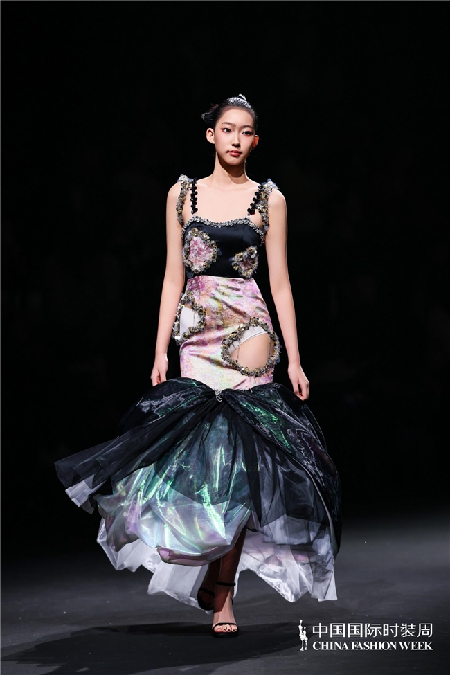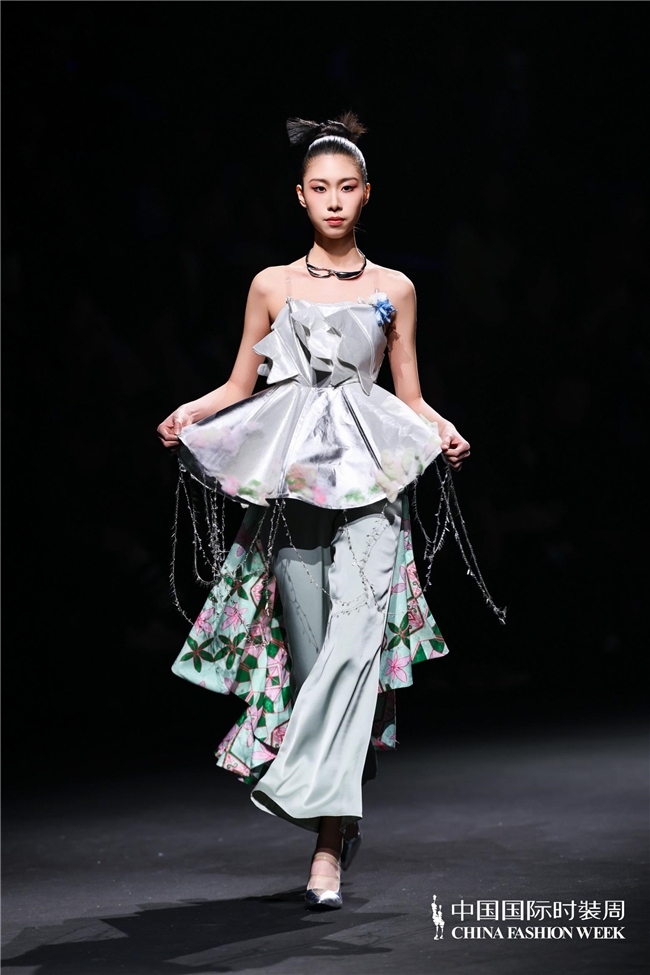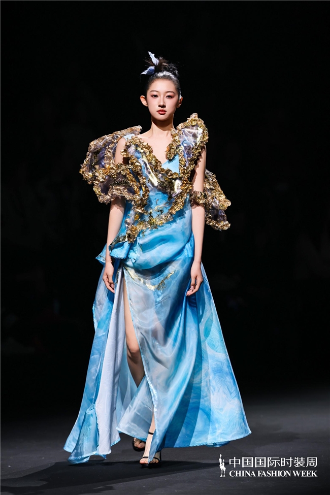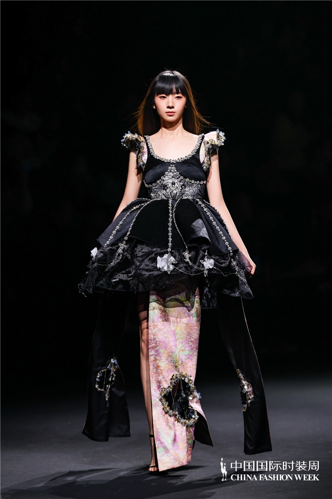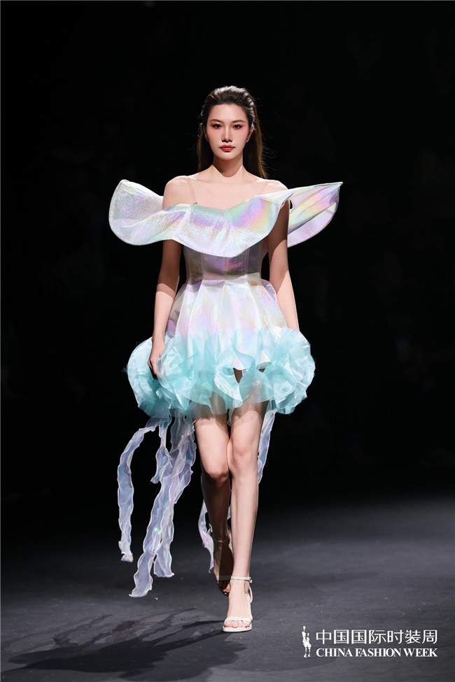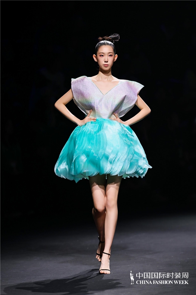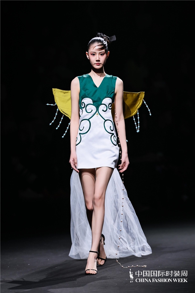 尤为值得关注的是,本场发布在童真想象之外更呈现出新一代设计者对中华优秀传统文化的细腻感知与创造性转化。皮影、点翠、剪纸、苗绣、竹编等非遗技艺,被巧妙转译于面料肌理、廓形结构与装饰细节之中;古诗词意境、云肩、襦裙、宋锦以及民族服饰文化等传统美学元素,也在孩子们的笔触下获得了新的理解与重构。小小设计师们以自身所处的时代特征与审美感知,赋予这些文化符号更轻盈、更鲜活的表达方式。现场还同步进行了小小设计师荣誉发布与展示,进一步呈现了新生代设计力量的成长风采与创作成果。