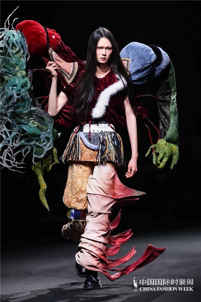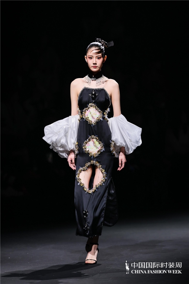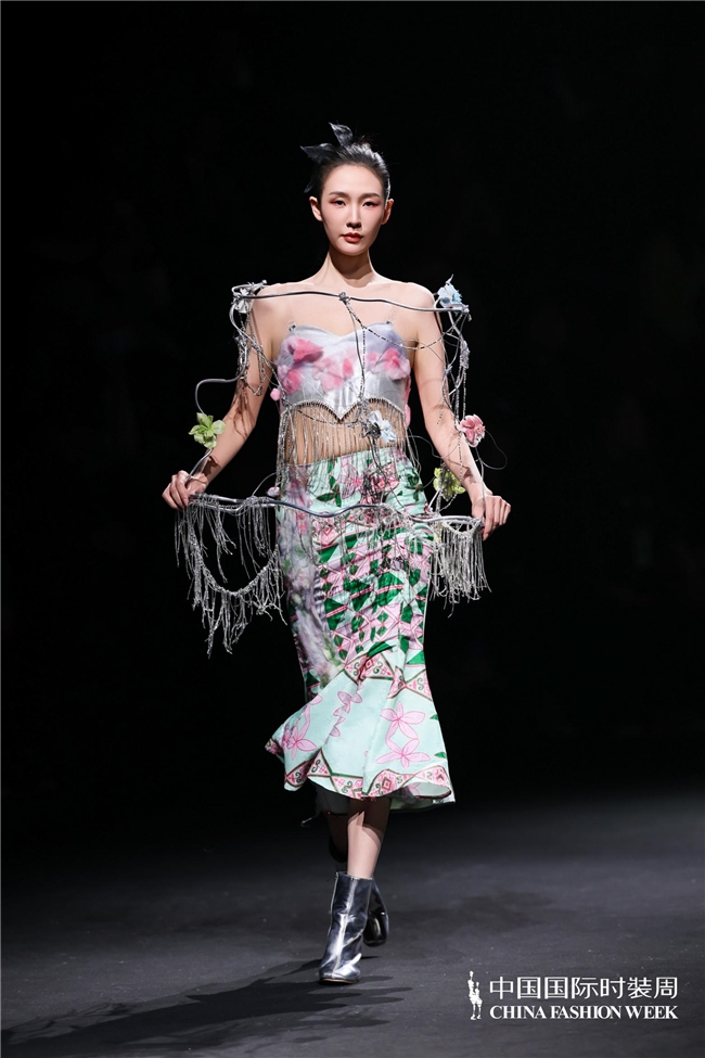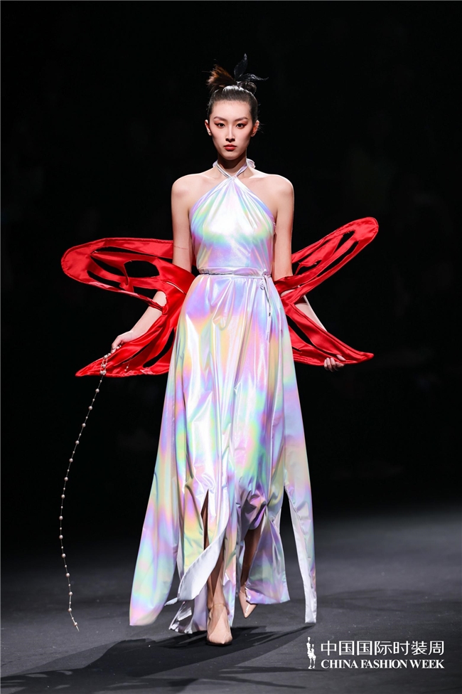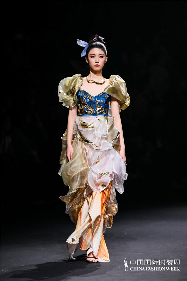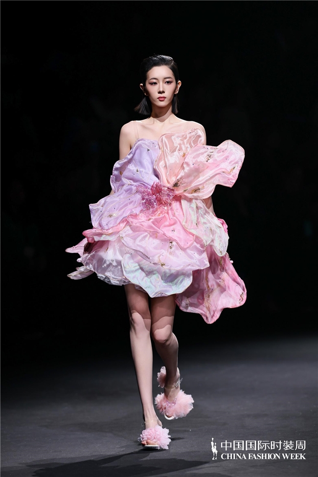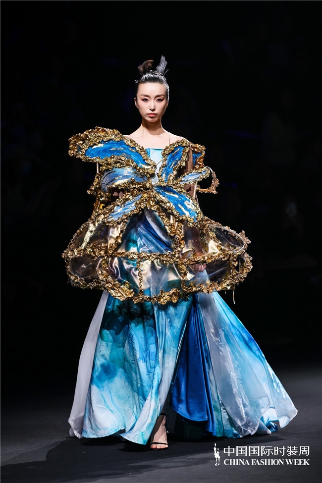 尤为值得关注的是,本场发布在童真想象之外更呈现出新一代设计者对中华优秀传统文化的细腻感知与创造性转化。皮影、点翠、剪纸、苗绣、竹编等非遗技艺,被巧妙转译于面料肌理、廓形结构与装饰细节之中;古诗词意境、云肩、襦裙、宋锦以及民族服饰文化等传统美学元素,也在孩子们的笔触下获得了新的理解与重构。小小设计师们以自身所处的时代特征与审美感知,赋予这些文化符号更轻盈、更鲜活的表达方式。现场还同步进行了小小设计师荣誉发布与展示,进一步呈现了新生代设计力量的成长风采与创作成果。