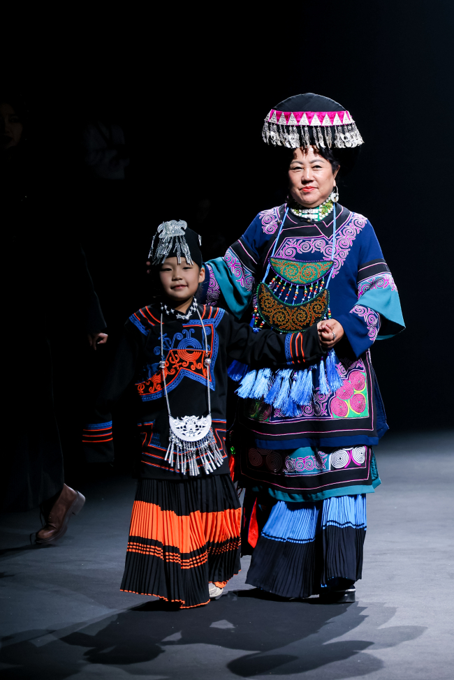 立足市场需求、当代审美与技艺传承,品牌以“非遗工坊+合作社+绣娘手工技艺+创新产品设计+设计师孵化”模式,在自我发展的同时,助力本土设计力量成长,赋能乡村振兴;同时联动非遗银饰匠人,将手工锻造的金属银扣作为点睛元素,以行走的凉山彝族美学让非遗走出博物馆,实现传统文化在当代语境下的活态传承与时尚表达。