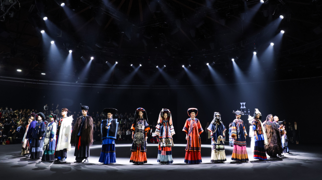 凉山彝族自治州创新服饰品牌衣迪阿诺联合北京服装学院、中国十佳服装设计师梁燕教授在2026年中国国际时装周(春季)舞台上,向观众呈现了以“山河史诗·彝生之境”为题的2026秋冬发布会,现场1500余位观众观看了本场发布会。