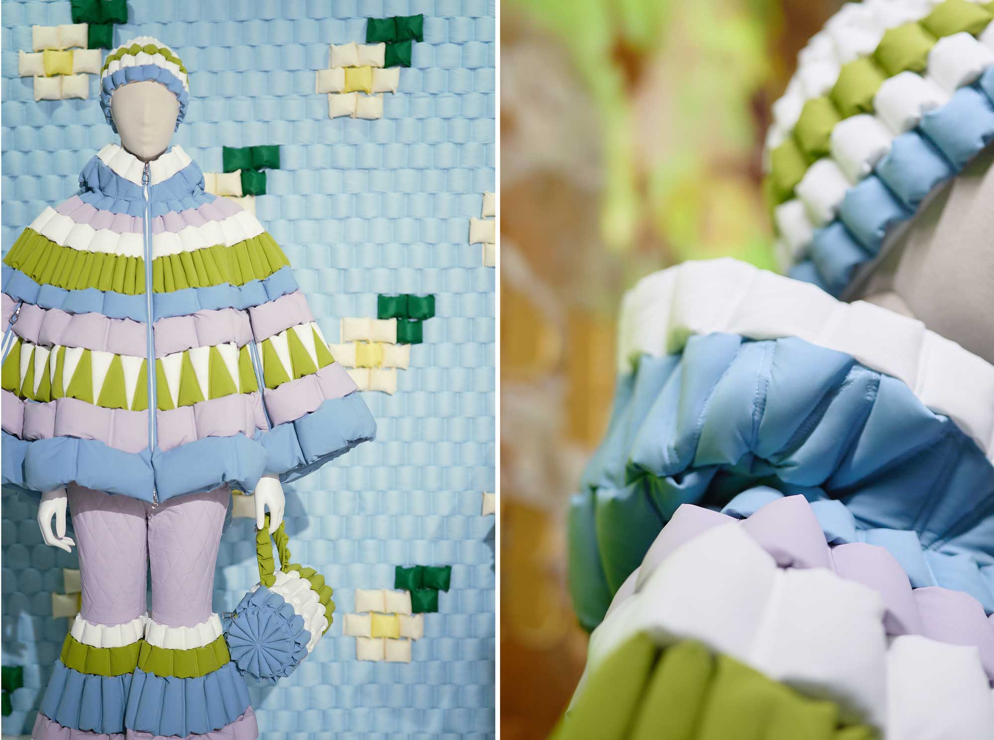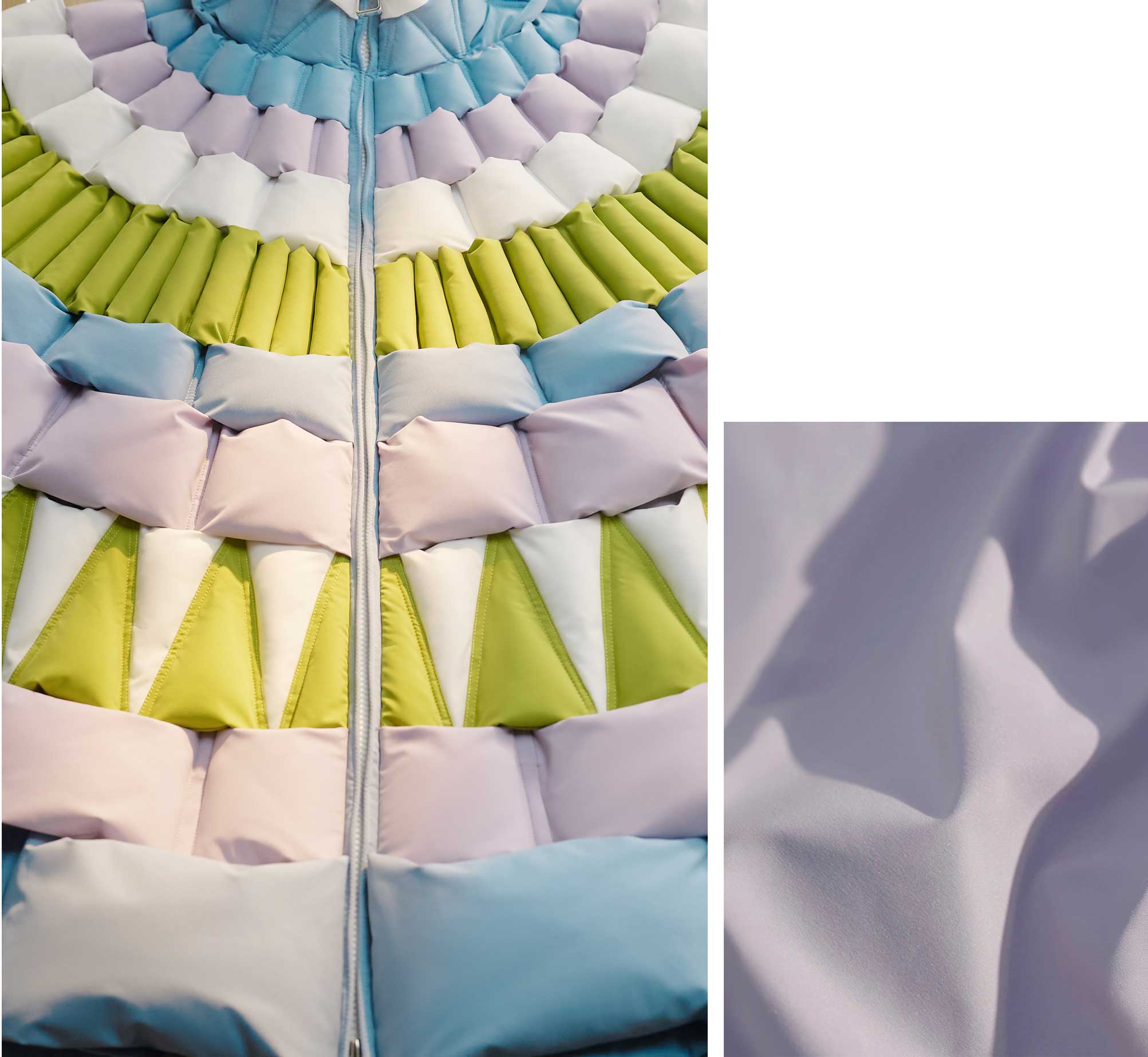 这两件以马赛克艺术为灵感的未来时装,来自于SORONA®品牌与全球羽绒服高级时装领导者品牌RAXXY共创的“URBAN SURFACE PROTOCOL”合作系列。马赛克艺术穿越了时间。早在公元前,美索不达米亚平原的人们就用彩色陶土钉在墙面上,拼出几何图案。如今,SORONA®生物基材料凭借高性能与质感,为RAXXY带来新的创作灵感,也催生了 “协作维新” 的艺术哲思。